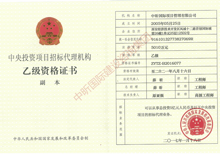 可以从事总投资5亿人民币及以下中央投资项目的招标代理业务