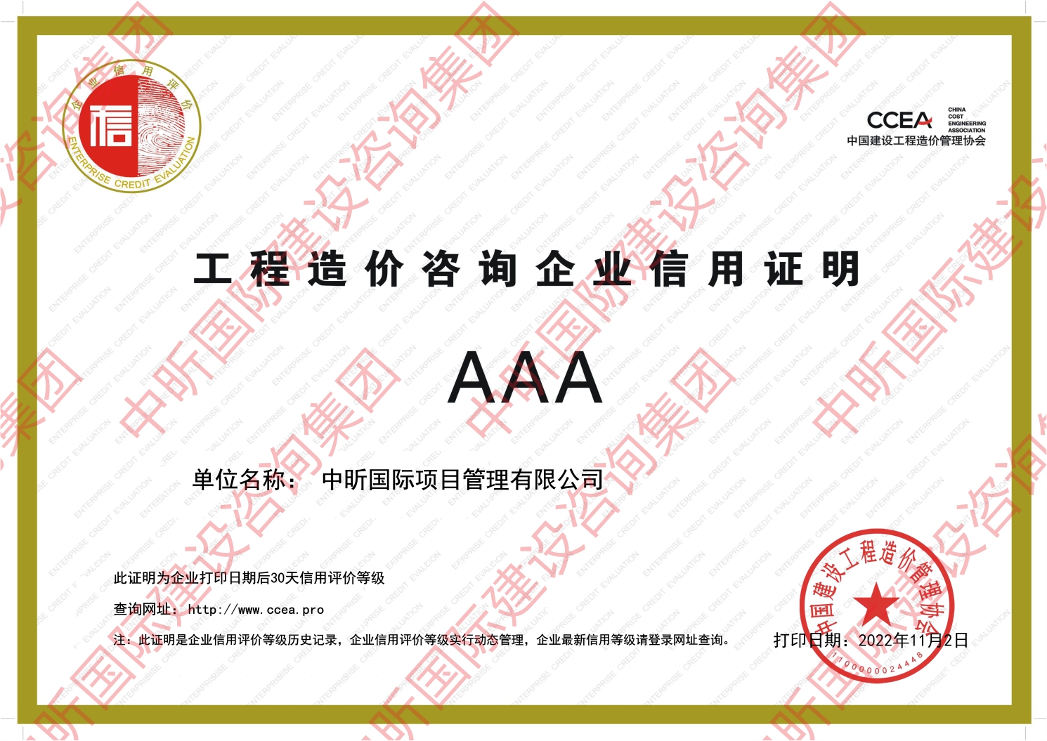 全国工程造价咨询AAA级企业信用评价